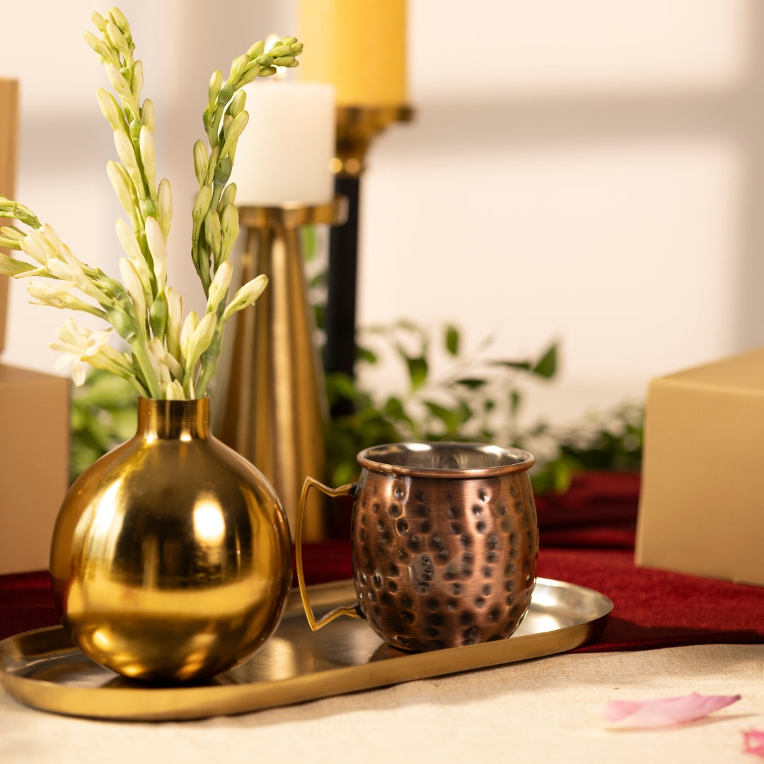 this antique looking mug is perfect to enjoy your chilled beer. a perfect set to gift to your friends while partying together. very affordable with a tinch of premium looking Brass handle to uplift the look of these glasses. You can have 450ml of your beverage in the single mug