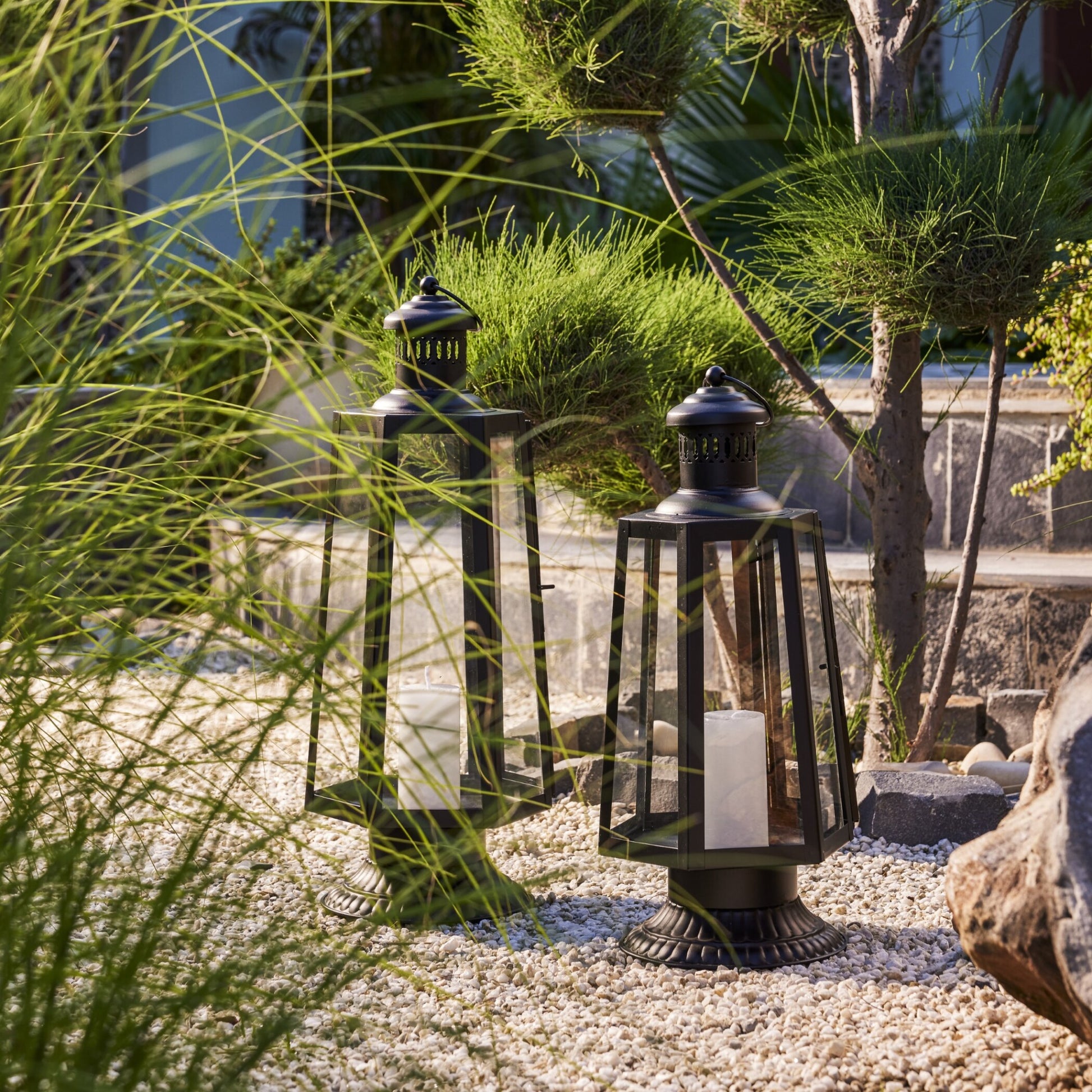 The traditional European lanterns lamp posts become the inspiration of these stunning black coloured French Love metal lanterns. They are a sleeker version of the old charm lanterns and have a matt finish. They look vintage yet contemporary, finish the look with broad pillar candle, string lights or even floral table scape set ups.