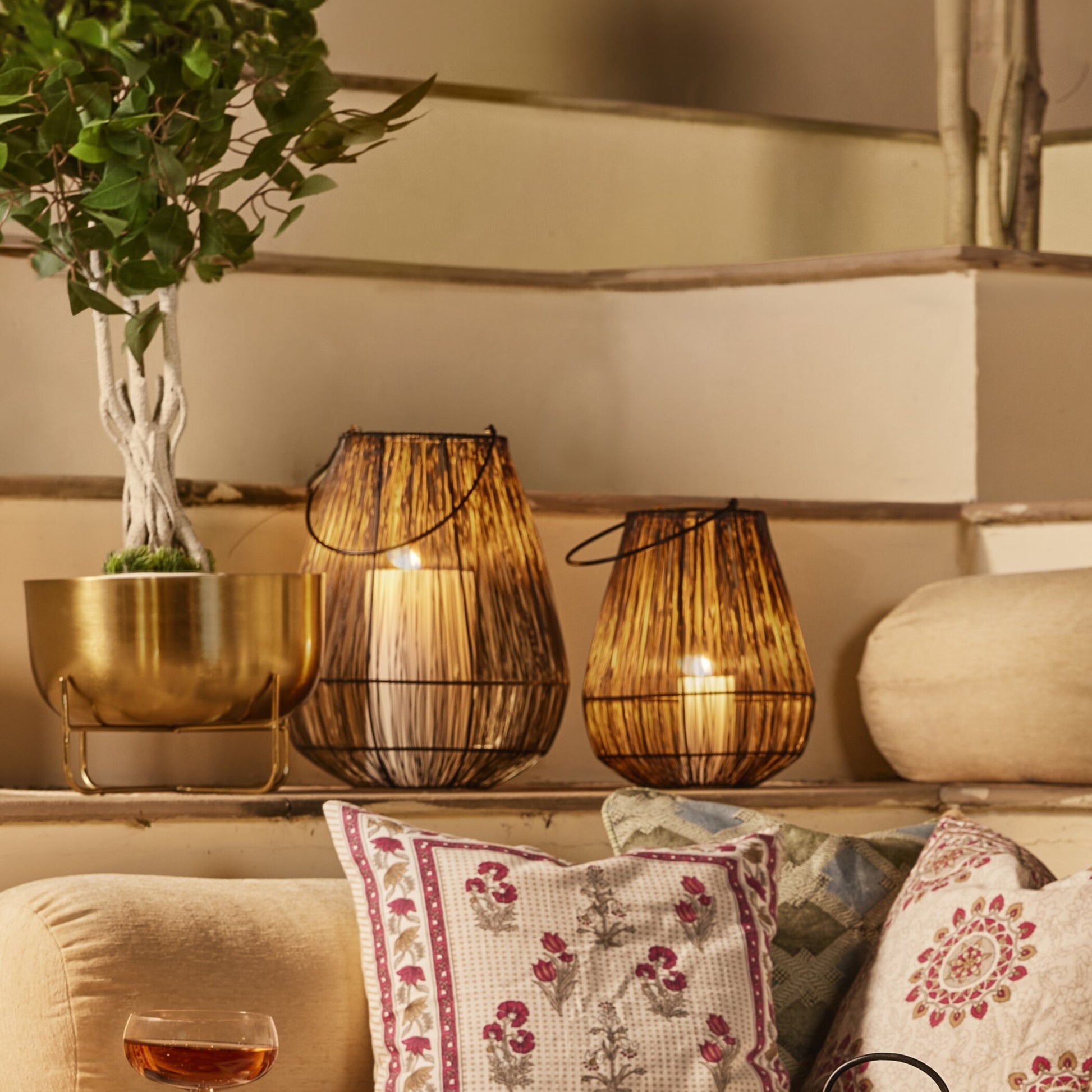 Add a soft and relaxing atmosphere to your patio or garden or illuminate a path with these stunning metal mesh pear shaped lanterns. The black polish with copper coating accentuates these lanterns.